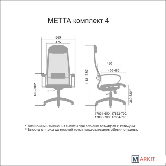 Markit » Офисная мебель » Офисные кресла, стулья » Кресло Metta SU-1-BK Комплект 4, Pl пр/сечен (пластиковые ролики, черный)
