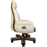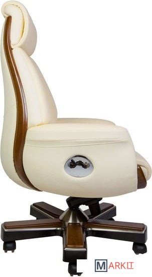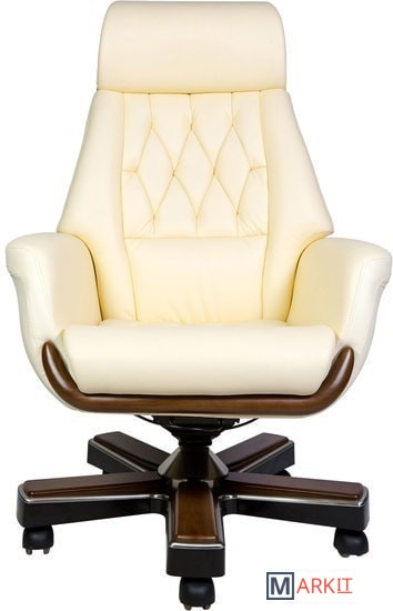 Классическое кресло с простежкой спинки типа «каретная стяжка», выполнено из натуральной кожи высшего качества. Кресло оснащено синхро-механизмом, с фиксацией наклона в любом положении. Вставки из натурального дерева гармонично интегрированы в корпус кресла.