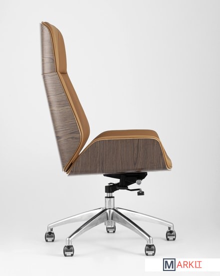 Современное и функциональное кресло для руководителя.Обивка выполнена из качественной экокожи. Комфорта добавляют удобные подлокотники, а благодаря механизму регулировки высоты и качания можно выбрать наиболее удобное положение. Дизайнерская форма добавит помещению уюта и стиля, а вставки, декорированные под натуральное дерево, выглядят очень изысканно.Высокая спинка оказывает качественную поддержку и позволяет провести в кресле долгое время без усталости. Каркас изготовлен из металла и позволяет выдержать нагрузку до 150 кг.