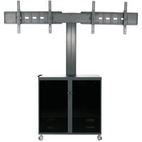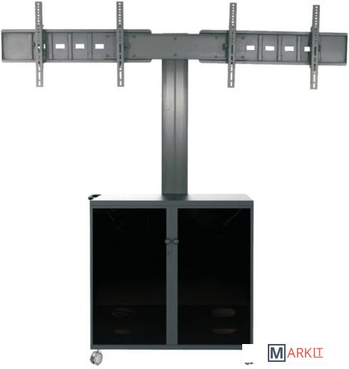 Мобильная стойка MediaPRO 1200 - одна из самых гибких и многофункциональных в своем роде.На ней можно разместить две панели или ТВ с диагональю 30-60" и весом до 60 кг каждый. Поддерживает стандарт крепежа до VESA 800x400. Эта модель оснащена металлической тумбой (размер, ГхШхВ: 500 х 500 х 700 мм), куда можно убрать всё многочисленное оборудование. Тумба закрывается на ключ, что бы ограничить доступ и обеспечить сохранность установленных устройств, а блок розеток внутри обеспечивает их быстрое подключение. Используя кабель канал, провода компактно собираются вместе и не мешают использованию и перемещению тележки. Можно добавить такие опции как полки для видеокамеры, кодека и т.п. Каждая полка может нести нагрузку до 20кг, а тумба до 30 кг.
