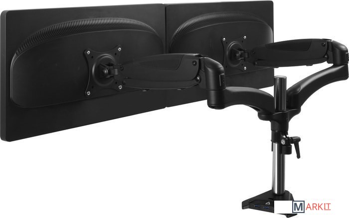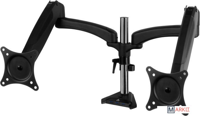 | Функциональные особенности | поворотный, с регулировкой высоты, кабель-канал, струбцинное крепление, для 2 мониторов |