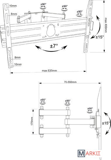 | Расстояние от стены (потолка) | 70 — 550 мм |