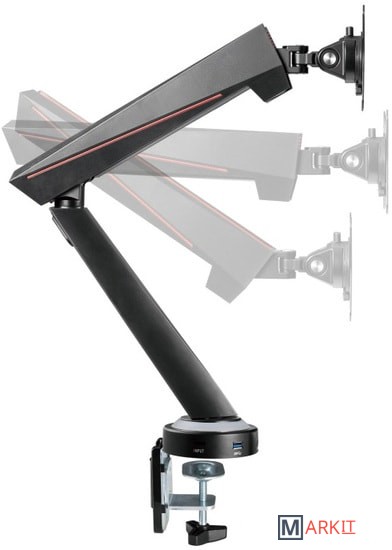 - 2 порта USB 3.0 и 2 порта для мультимедиа;- Встроенный датчик натяжения пружины: для точной регулировки веса;- Кабель-менеджмент: элегантно скрывает любые кабели, подключенные к монитору;- RGB подсветка: органично вписывается в любой игровой сетап.