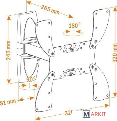 | Угол поворота (без ТВ) | 180 ° |