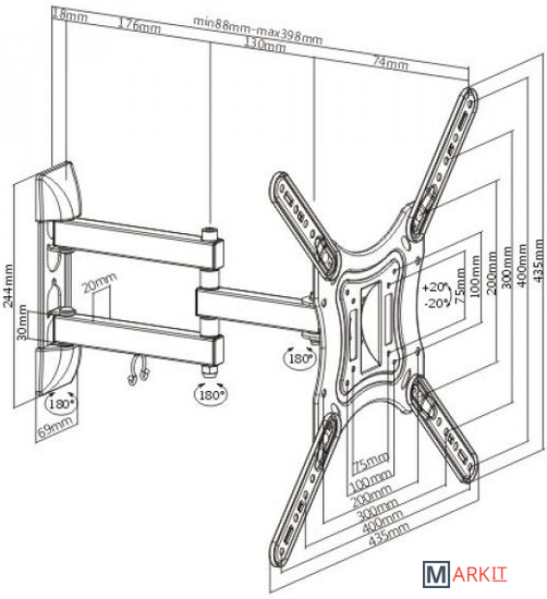 | Расстояние от стены (потолка) | 88 — 398 мм |