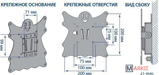 | Совместимая диагональ экрана | 15 — 40 " |