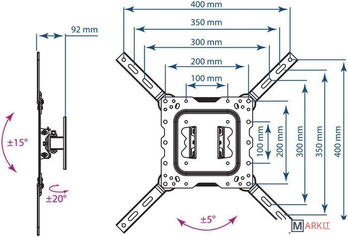| Расстояние от стены (потолка) | 92 мм |