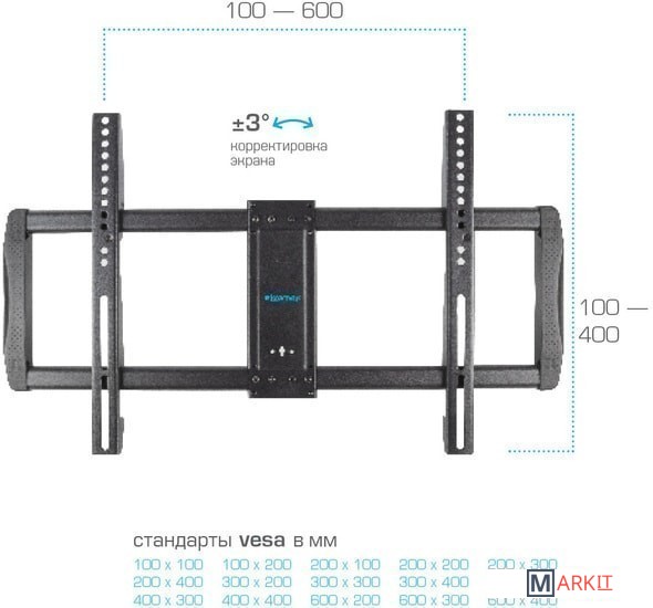 | Совместимость с креплением VESA | 100x100, 100x200, 200x100, 200x200, 200x300, 200x400, 300x200, 300x300, 300x400, 400x200, 400x300, 400x400, 600x200, 600x300, 600x400 |