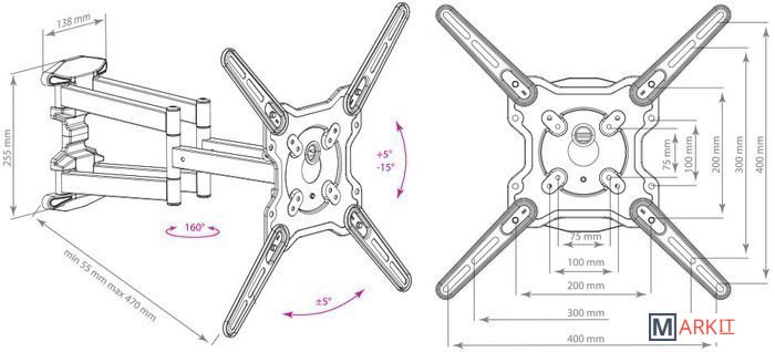 | Совместимость с креплением VESA | 75x75, 100x100, 200x100, 200x200, 300x200, 300x300, 400x200, 400x300, 400x400 |
