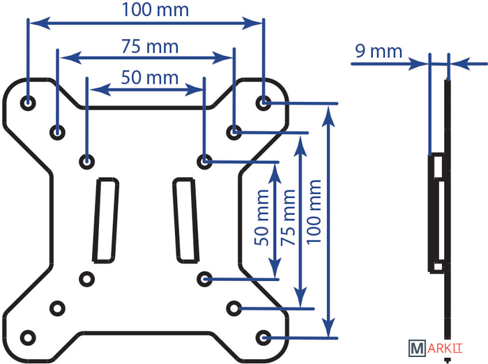Расстояние от стены (потолка) 9 мм