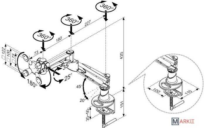| Функциональные особенности | поворотный, с регулировкой высоты |
