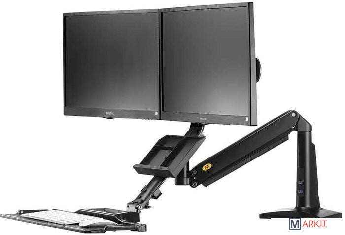 | Функциональные особенности | поворотный, с регулировкой высоты, кабель-канал, струбцинное крепление, для 2 мониторов / поворотный, с регулировкой высоты, кабель-канал, струбцинное крепление |