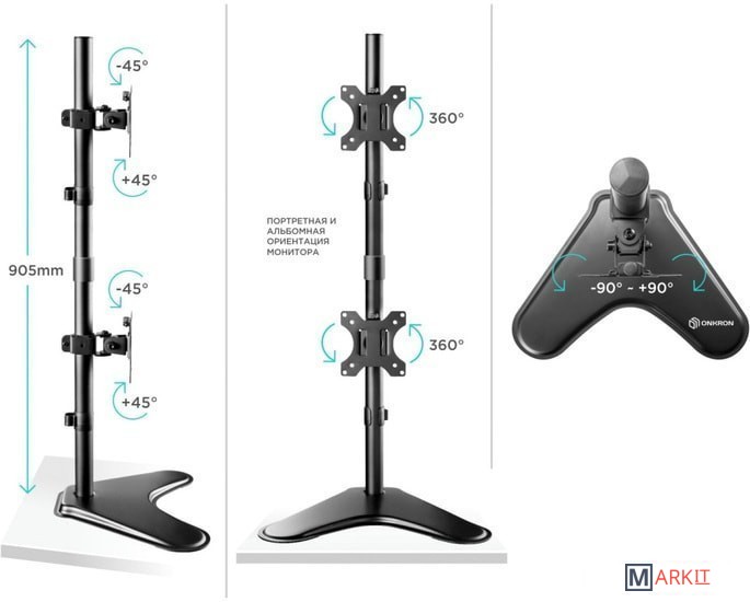 | Функциональные особенности | поворотный / поворотный, для 2 мониторов |