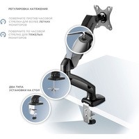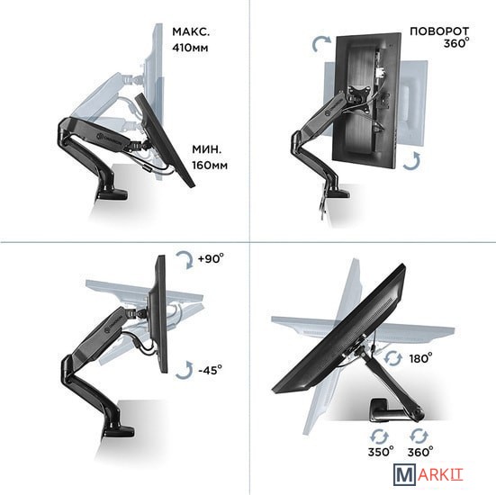 | Функциональные особенности | поворотный, с регулировкой высоты, кабель-канал, струбцинное крепление |