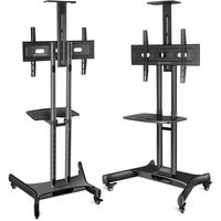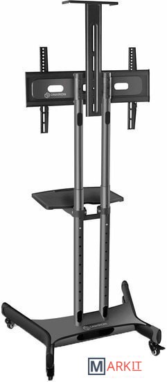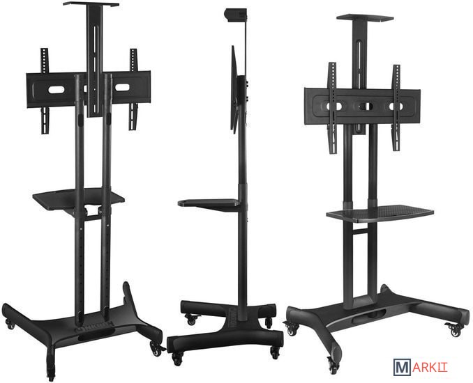 Флагманская модель TS1551 предназначена для экранов с диагональю 32"-65". Эта мобильная стойка для телевизоров выполнена в черном цвете, изготовлена из высококачественной стали с порошковым покрытием.Металлическая полка, размещённая над телевизором, с возможностью регулировки по высоте, предназначена для размещения видео или веб камер для проведения конференций.Регулировка высоты телевизора осуществляется легко и быстро с помощью специальных кнопок с пружиной и не требует дополнительных приспособлений. Продуманная конструкция обеспечивает регулировку высоты в диапазоне от 1200 мм до 1500 мм с шагом в 50 мм, таким образом можно выбрать 6 режимов, Вы сможете настроить идеальную высоту для просмотра ТВ.