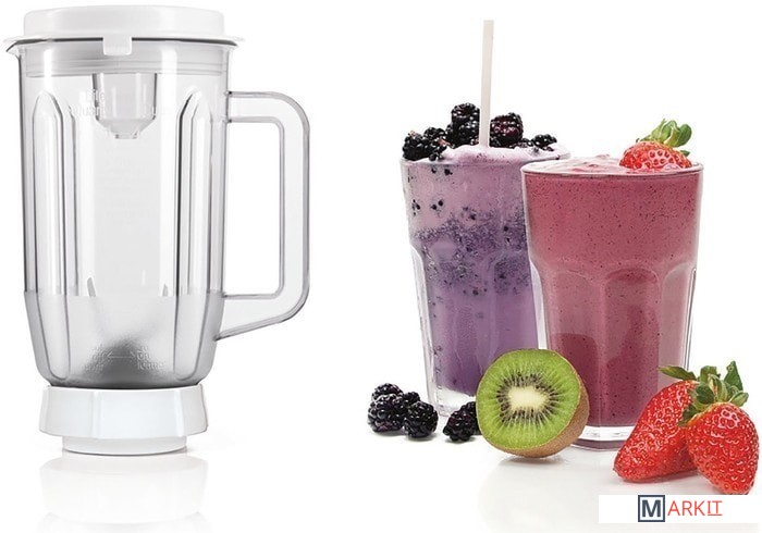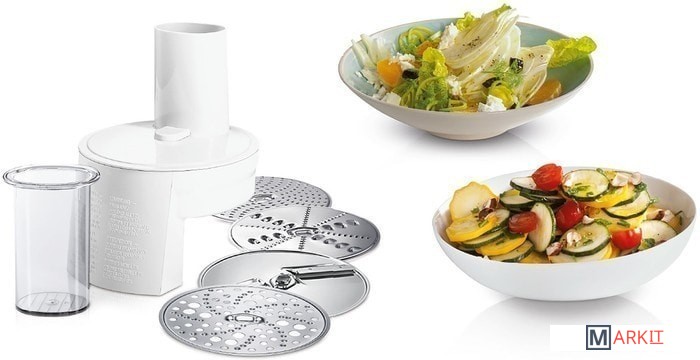 | Функции | мясорубка, блендер, цитрус-пресс, взбивание, смешивание, замешивание дрожжевого теста, терка, шинковка, ломтерезка, драники |