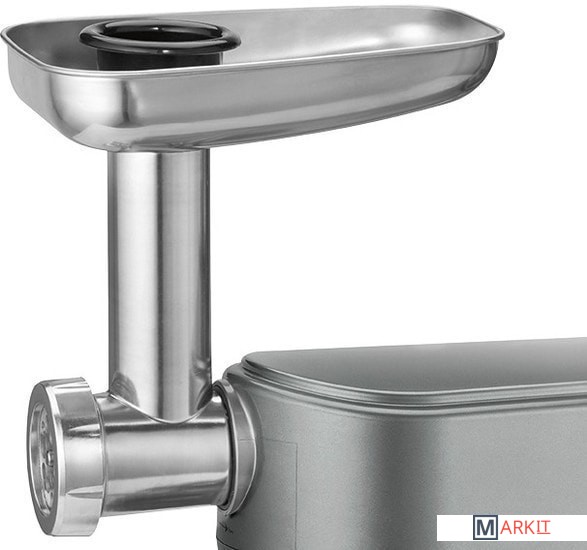 Электронный таймер / ЖК-дисплей с подсветкой.Электронный контроль скорости.Мясорубка: 3 решетки, насадка для колбас, насадка для печенья, насадки для макарон.