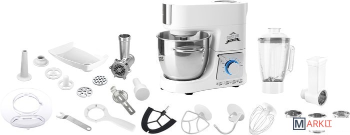 | Функции | мясорубка, блендер, взбивание, смешивание, замешивание дрожжевого теста, терка, шинковка, ломтерезка |