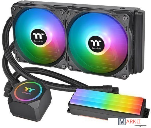 Система жидкостного охлаждения в которой помимо центрального процессора охлаждаются также модули оперативной памяти.В комплект поставки входит контроллер ARGB, который позволяет пользователям переключать режимы светодиодов, цвета светодиодов и скорость светодиодов.Пользователи могут переключаться между режимами потока, пульсации, импульса, мигания, волны, полного света, спектра RGB и выключения с различными цветами и вариантами скорости светодиода.