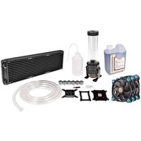 Thermaltake представляет комплект для самостоятельной сборки системы жидкостного охлаждения.В комплект входят следующие компоненты: - Водяной блок Pacific W1- Комбинированный насос / резервуар Pacific PR22-D5- Радиатор Pacific R360- Фитинги Pacific (6 шт)- Вентилятор Riing 12 LED Blue Fan (3 шт)- Трубка V-tubler 4T- Хладагент 1000 мл. синий- Универсальный комплект для монтажа процессоров Intel и AMD- Термопаста- 24pin x1 ATX Bridge Tool