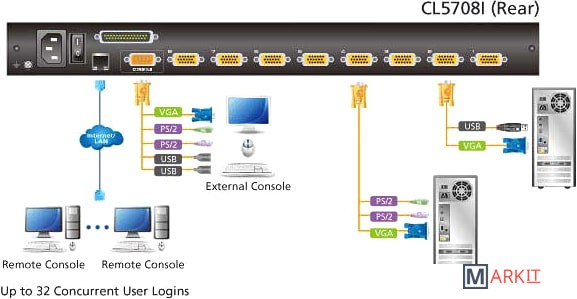 Основные особенности:- эксклюзивная светодиодная подсветка – разработана компанией ATEN для подсвечивания клавиатуры и сенсорной панели, чтобы улучшить видимость в условиях низкой освещенности- встроенная КВМ-консоль с 17/19" CL5708IN ЖК-монитором со светодиодной подсветкой в корпусе Slideaway- технология экономии пространства - до двух консолей (по одной шине) могут управлять 8 компьютерами- гирляндное подключение до 15 дополнительных устройств – управление 128 компьютерами с одной консоли (с помощью совместимых КВМ-переключателей: ACS1208A, ACS1216A, CS1708A,CS1716A)- порт дополнительной консоли – управление компьютерами при помощи внешней консоли (монитор, клавиатура и мышь USB или PS/2)- разрешение видео - до 1280x1024 при 75 Гц, DDC2B на локальной консоли; до 1920x1200 при 60Hz/24-бит для удаленных подключений- двойной интерфейс – поддерживает компьютеры и консоли с клавиатурой и мышью PS/2 или USB- поддержка доступа подключенных компьютеров к периферийным устройствам, подсоединяемых к USB-порту на консоли с ЖК-монитором- автоопределение положения станции в гирляндной цепи, нет необходимости в ручной установке DIP-переключателей: положение станции показывается светодиодами на передней панели- поддержка «горячего» подключения – добавление и отключение компьютеров без выключения переключателя- эмуляция клавиатуры и мыши (PS/2 и USB) для одинакового переключения и одновременной загрузки нескольких компьютеров, даже если фокус консоли находится в другом месте- поддержка мультимедийных USB-клавиатур для Windows, Mac и Sun- поддержка внешней USB-мыши- поддержка Video DynaSync - хранит EDID (Extended Display Identification Data, расширенные идентификационные данные дисплея) монитора консоли для оптимизации разрешения- возможность монтажа в стойку 1U- возможность вращения модуля ЖК-дисплея на 115 градусов, что позволяет выбрать удобный угол просмотра!!! Функция периферийных USB-устройств работает только с подключениями на основе USB-кабелей. Управление:- удобный выбор компьютера с помощью кнопок на передней панели, горячих клавиш и многоязычного экранного меню (OSD)- поддержка до 32 одновременных подключений пользователей- веб-интерфейс с поддержкой нескольких языков и древовидным экранным меню для локальной и удаленной работы- возможность настройки качества видеоизображения для гибкой адаптации к различным сетевым средам- функция автосканирования отслеживает указанные пользователем компьютеры- режим широковещания – одновременное выполнение операций на всех выбранных компьютерах (установка программного обеспечения, выключение машин на уровне всей системы и т.д.)- возможность одновременного обновления микропрограммы для всех КВМ-переключателей, подсоединенных через порт гирляндного подключения (CS1708A, CS1716A) с помощью кабеля гирляндного подключения- интеграция с программным обеспечением для централизованного управления CC2000- резервное копирование и восстановление конфигурации и учетных записей пользователей- функция регистрации событий- совместимость с IPv6Удобный интерфейс:- графический интерфейс пользователя на основе браузера и AP, а также экранное меню локальной консоли, обеспечивают мощный, интуитивный, удобный и многоязычный интерфейс, позволяющий уменьшить затраты времени на обучение пользователей и повысить производительность- поддержка различных платформ - Windows, Linux, Mac, Sun- поддержка различных