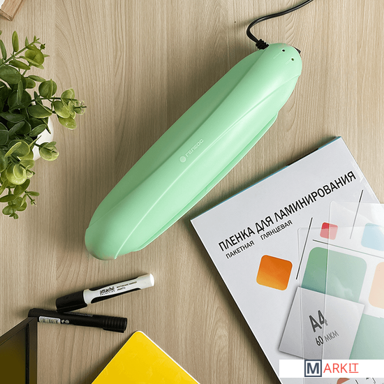 Пакетный компактный 2-х валовый ламинатор ГЕЛЕОС ЛМА4-Р для ламинирования документов формата А4 и меньше. Эта яркая, дизайнерская, веселая модель ламинатора разместится в любом уголке помещения и создаст свое настроение в интерьере. Замечательно подойдет для детских учреждений, таких как детский сад и школа, в комнате у ребенка. В офисе яркий цвет ламинатора не даст заскучать. Форма ламинатора обтекаемая, без углов. Заламинирует необходимый материал со скоростью 300 мм/сек. Фиксированная температура горячего ламинирования позволяет использовать пленки плотностью от 75 до 150 мкм. Чем больше мкм в пленке, тем жестче будет готовый материал. Очень простое и удобное управление. Рабочая панель на русском языке. Световая индикация вовремя предупредит о готовности валов к работе. Всего 3-4 минуты нагрева и можно ламинировать. Максимальная толщина ламинирования документов 0,6 мм. Что можно заламинировать? Все, что толщиной до 0,6 мм (учитывая пленку) и находится на бумаге. Ламинирование детских рисунков - поможет защитить их на долгие годы и сделает краски еще более насыщенными. Ламинирование учебных пособий, карточек со словами, памяток, презентаций – очень актуально для занятий с маленькими детьми и не переживать, что карточки порвутся или испортятся. Идеальное решение для воспитателей и учителей. Ламинирование фотографий – защитит их от выгорания, влаги. Вы сможете оформить свой фотоальбом. А бывают ситуации, в которых фотографии, объявления, меню ресторанов и кафе, вывески, указатели, информационные листы используются на улице, и в таких случаях ламинирование приходится как нельзя кстати. Ламинирование грамот, сертификатов, дипломов - заламинированные дипломы, грамоты и сертификаты можно развесить на самом видном месте — пусть памятки о ваших достижениях всегда радуют глаз, воспламеняют гордость и вдохновляют на новые победы! Ламинирование рецептов – вы любите готовить и используете уникальные семейные рецепты, которые передаются из поколения в поколение? Просто заламинируйте рецепт — и вам не придется волноваться, о том, как бы не испачкать его случайно и не пролить на него жидкость. Ламинирование документов, ценников, справок - спрятанное под ламинирующую пленку информация, останется в целости и сохранности долгие месяцы и даже годы. Ламинирование меню для кафе и ресторанов - повысит износостойкость, защитит изображения от выгорания, случайно пролитой жидкости и придает фотографиям ваших блюд глянец ламинирующей пленки.