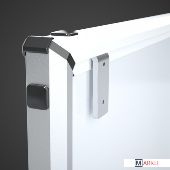 Доска StarBoard – это элегантный, современный дизайн и безупречное качество исполнения. Поверхность магнитно-маркерная для письма маркерами и крепления информации с помощью магнитов. Профиль из анодированного алюминия. У доски имеется две полки, встроенные в нижнюю часть. Для обеспечения прочности, доска с обратной стороны доски усилена оцинкованным листом стали. Крепление к стене с помощью регулировочных винтов. Доска комплектуется крепежным комплектом, 12 магнитами, 4 маркерами и фирменной магнитной щеткой.