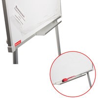 Белое лаковое покрытие предназначено для письма специальными маркерами для белой доски. Размер доски – 100х70 см. Регулируется по высоте до 164 см. Устанавливается на треноге. Металлическая поверхность позволяет размещать объявления при помощи магнитов. Блокнот крепится при помощи неподвижных винтов. Снабжена полочкой для аксессуаров. Для защиты рабочей поверхности доски на нее нанесена защитная пленка. Перед началом работы необходимо удалить защитную пленку.