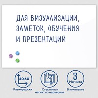 Markit » Офисные доски, флипчарты » Магнитно-маркерная доска BRAUBERG стеклянная 40x60 см (белый)