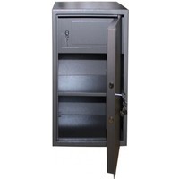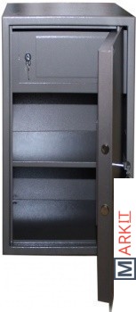 Сейф офисный мебельный КМ-900Т имеет сварную металлическую конструкцию. Корпус изготовлен из стального листа толщиной 2,5 мм. Толщина двери 5 мм, усилена изнутри панелью толщиной 1,5 мм. Сейф снабжен регулируемой по высоте съемной полкой и трейзером (дополнительным отделением, запирающимся на ключевой замок "Евролок"). Имеет один ключевой замок CAWI (Германия). Покрытие изделия - полимерное.