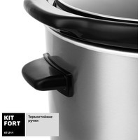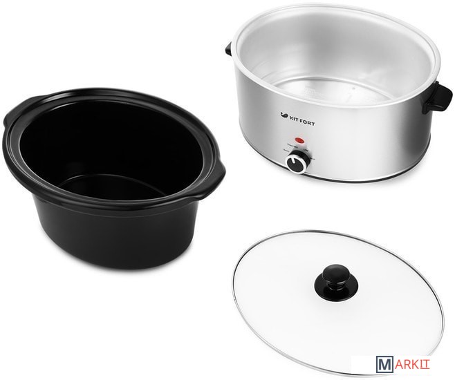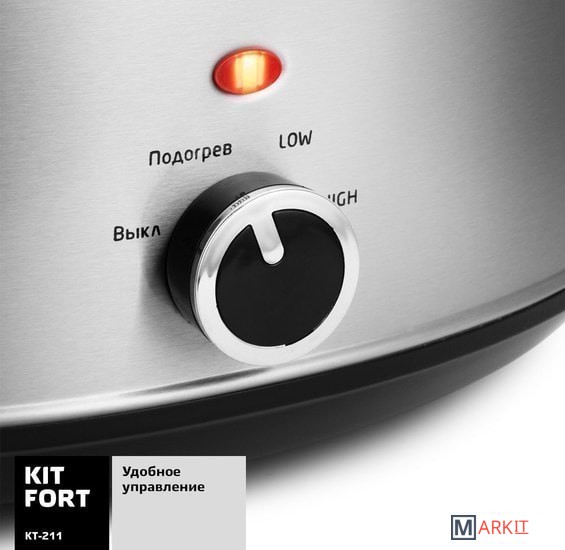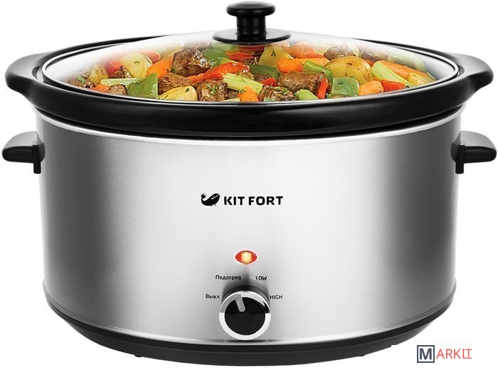 Медленноварка Kitfort KT-211 — это простой в пользовании кухонный прибор с большим диапазоном применения. Она состоит из двойного корпуса, внутри которого по периметру расположены нагреватели, и керамической кастрюли с крышкой. Если в обычной кастрюле пища варится, а на сковородке жарится, то в медленноварке происходит немного другой процесс — томление. Температура приготовления лежит в диапазоне 60–120°С в зависимости от режима и особенностей готовящегося блюда. Благодаря такому температурному диапазону вода почти не испаряется, а продукты медленно тушатся в собственном соку, сохраняя практически все витамины и полезные микроэлементы.2 режима нагрева + подогрев уже готовой пищи.