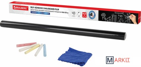 Доска-панель клеится на любую ровную поверхность. Черная поверхность доски предназначена для письма мягкими мелками и сухой пастелью. При желании можно разрезать рулон на разнообразные фигуры.Представляет собой рулон размером 60х120 см. Легко клеится на гладкую, ровную поверхность. Не оставляет следов при переклейке. Инструкция по наклеиванию размещена на упаковке. Мелки цвета ассорти и салфетка из микрофибры в комплекте. Подложка разлинована в клетку (1 клетка = 1 см) для удобства разрезания на необходимые части. Пленку также можно использовать для обновления своей старой меловой доски.