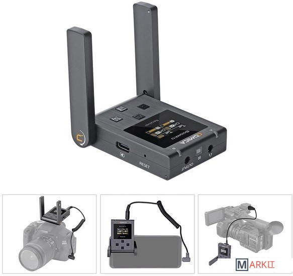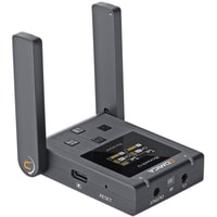 Ресивер имеет дисплей для отображения информации о подключении, а также покажет уровень заряда передатчиков. Для усиления сигнала используются антенны, но благодаря продуманно конструкции они не торчат, а складываются к корпусу, если это необходимоНа корпусе нет лишних элементов, только кнопки включения и MUTE. Встроенный микрофон позволяет работать с трансмиттером как с ручным микрофоном, либо подключить петличный микрофон