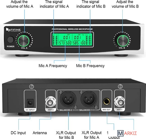 | Элементы управления приемника | вкл/выкл, регулировка громкости микрофона |
