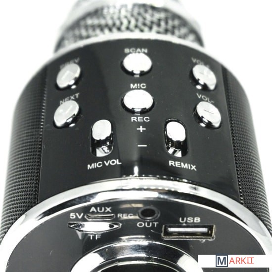 Микрофон WS-858 объединяет в себе много функций: устройство можно использовать как MP3-плеер, портативную колонку, FM-приемник или караоке-микрофон в комбинации со смартфоном или планшетом, а также как мобильное зарядное устройство.