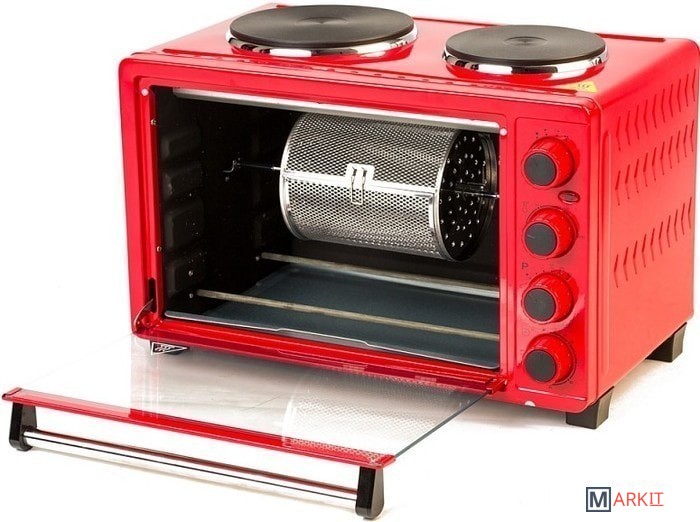 Электрическая мини-печь OURSSON MO3030 объемом 30 литров оснащена всеми необходимыми функциями и позволяет не только готовить блюда внутри печи, но и использовать конфорки. Мощность большой конфорки – 1000 Вт, маленькой – 600 Вт. Печь имеет 5 режимов приготовления. Благодаря конвекции выпечка пропекается более равномерно, получается вкусной и румяной, а время приготовления сокращается. Таймер с автоотключением позволяет задать время приготовления, а звуковой сигнал известит о завершении приготовления. В комплект входят: решетка, противни прямоугольный и круглый, вертел и две ручки для решетки и вертела.