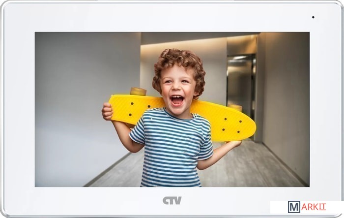 Монитор видеодомофона с 7" сенсорным дисплеем, поддержкой формата AHD и записью в Full HD. С удаленным доступом со смартфона через приложение CTV Home.