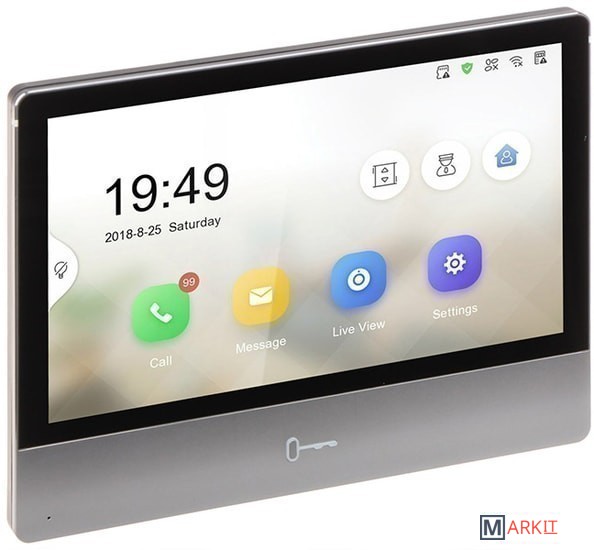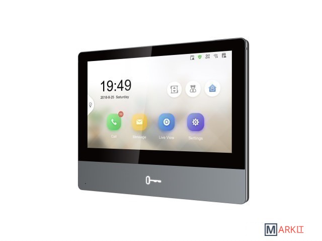 Hikvision DS-KH8350-TE1 – это новый цветной IP видеодомофон в ультра-тонком корпусе. Устройство поддерживает работоспособность сетевых вызывных панелей и камер, в том числе удаленно через смартфон или планшет с помощью приложения Hik-Connect. Ethernet сеть через порт RJ45 (10M/100M) работает по протоколам TCP/IP, SIP и RTSP. Также имеется интерфейс связи RS-485.Домофон оснащен 7-дюймовым цветным сенсорным IPS LCD экраном, который защищен премиальным закаленным стеклом. Для управления работой и настройками применяется главное экранное меню в виде удобного обновленного пользовательского интерфейса UI V2.0. Также справа выводятся сенсорные кнопки управления. Для открытия электрозамка предусмотрена отдельная механическая кнопка.Возможно подключение к домофону 8 вызывных панелей и 24 видеокамеры. В режиме интеркома можно подсоединить еще 200 мониторов данной фирмы, устройство консьержа или клиентов с установленным ПО iVMS-4200. Это даст возможность поддерживать аудиосвязь с этими устройствами. Качественные переговоры поддерживаются функцией понижения шумов и эха.