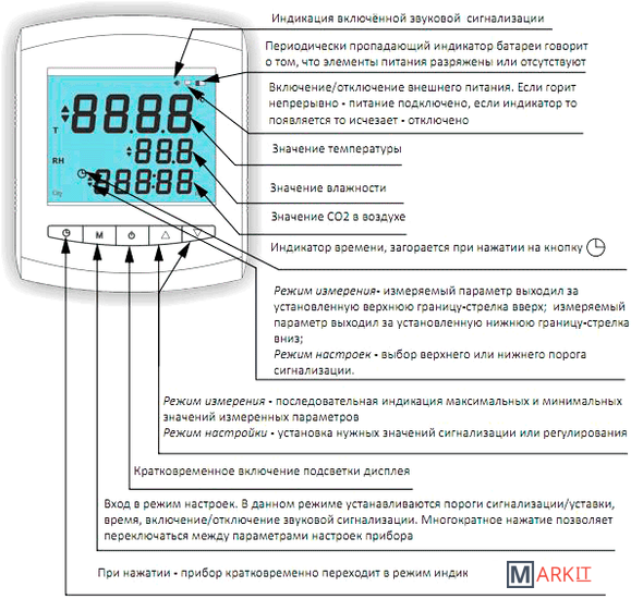 Markit » Метеостанции, гигрометры и термогигрометры » Монитор качества воздуха Relsib EClerk-Eco-RHTC-0-0-0