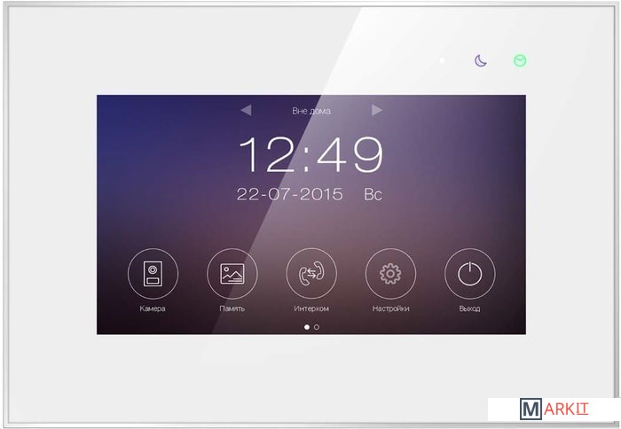 Монитор цветного видеодомофона 7 дюймов с емкостным сенсорным экраном с поддержкой форматов Full HD 1080p, CVBS, с возможностью отправки уведомлений о вызове в мобильное приложение "vhOme", удаленный просмотр на смартфоне происходящего у вызывной панели, удаленное управление замками, подключенными к вызывным панелям.