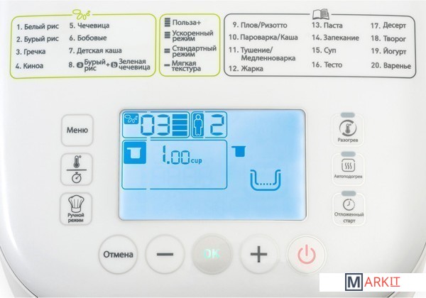 бобы, гречневая каша, десерт, детское питание, жарка, запекание, йогурт, каша, крупа, медленноварка, пароварка, паста, плов, ризотто, рис, суп, тесто, тушение |