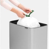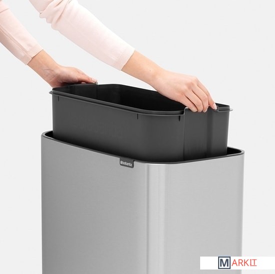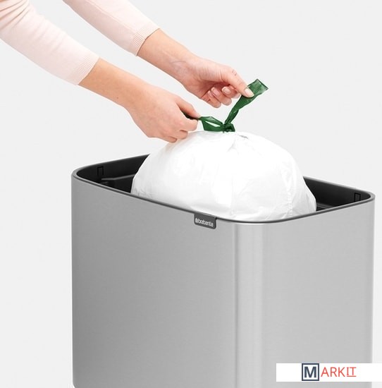Крышка бесшумно открывается легким касанием – система 'Soft-Touch'.Экономия места – удобно устанавливается вплотную к стене или в углу.Удобный и аккуратный сбор мусора – широкое загрузочное отверстие.Идеальное решение для сбора объемного мусора – крышка фиксируется в открытом положении.Вместительное внутреннее ведро размера XL для сбора отходов в большой семье.Оптимальная высота – забота о Вашей спине и удобная очистка пола.Удобная очистка – съемное внутреннее ведро из пластика.Отличная устойчивость и защита пола от повреждения – регулируемые по высоте ножки с нескользящим основанием.Бесплатная упаковка мешков для мусора Brabantia PerfectFit (размер R) – удобная замена и всегда опрятный вид.Легко собирается – защелкивающиеся ножки, инструкция в комплекте.Мусорный бак, созданный с заботой о Вашем доме и о нашей планете. Бронзовый сертификат "Cradle to Cradle".