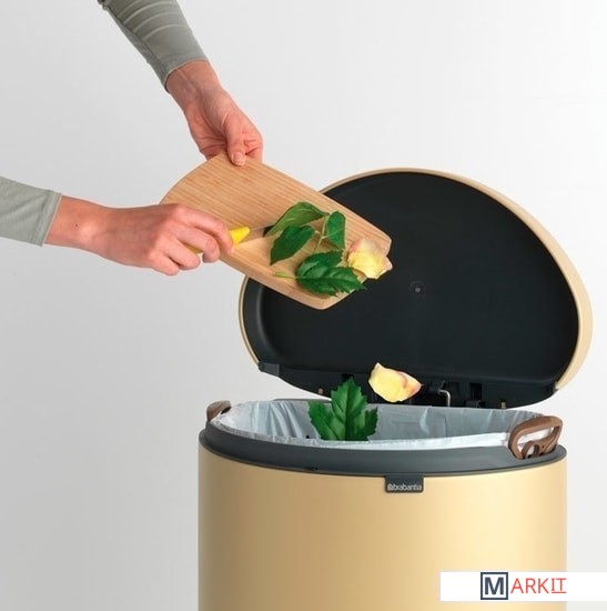 Экономия места – бак удобно устанавливается вплотную к стене или кухонному шкафу.Бесшумное закрывание и мягкий ход педали.При открывании крышка не касается стены.При открывании вручную крышка фиксируется в открытом положении.Удобная очистка – съемное внутреннее ведро из пластика со складными захватами.Удобная смена мешков для мусора – фиксации внутреннего ведра в «поднятом» положении.Бак удобно перемещать – гибкая ручка для переноски.Предохранение пола от повреждений – пластиковое защитное основание.Всегда опрятный вид – в комплекте идеально подходящие по размеру мешки для мусора PerfectFit (размер G).