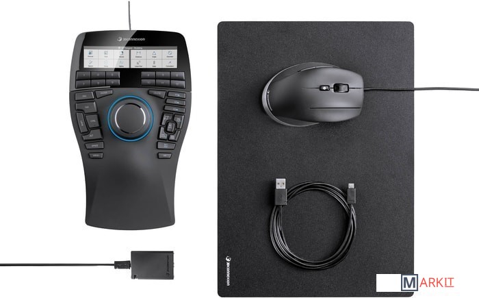 Комплектация 3D-мышь SpaceMouse Enterprise; Мышь CadMouse; Коврик для мыши CadMouse Pad; USB-концентратор с двойным портом.