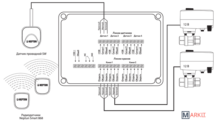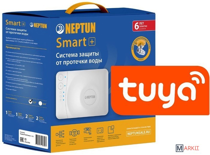 Умная система защиты от протечки воды Neptun PROFI Smart+ предназначена для обнаружения и локализации протечек воды в системах водоснабжения. Компоненты системы связаны и взаимодействуют друг с другом через центральный контроллер (модуль управления Neptun Smart+), который может быть укомплектован дополнительными платами расширения:• RS-485 (для систем диспетчеризации);• Ethernet (для проводного подключения в случае невозможности организации подключения к Wi-Fi).Функции:• Контроль протечки воды• Автоматическая блокировка водоснабжения при срабатывании любого датчика• Звуковая и световая сигнализация об аварии• Запоминание состояния аварии до устранения ее последствий• Защита шарового крана от закисания (Автоматический проворот крана один или два раза в месяц)• Отправка push-уведомлений о состоянии системы на смартфон• Мониторинг приборов учета расхода воды (счетчиков)• Удаленное управление подачей воды при помощи смартфона• Контроль показаний расхода воды с приборов учета ГВС и ХВС