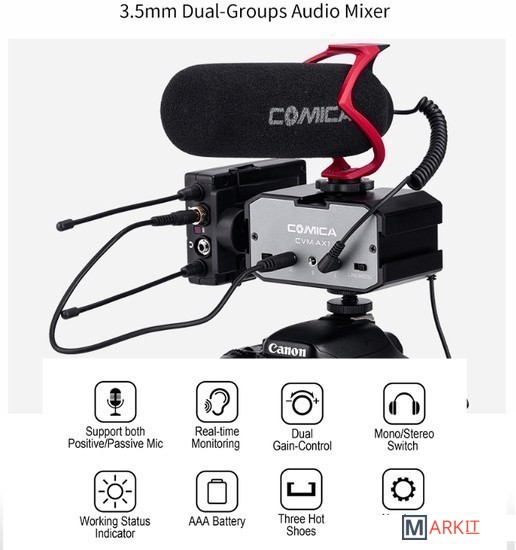 Markit » Аксессуары для фото и видеокамер » Накамерный аудиомикшер Comica CVM-AX1