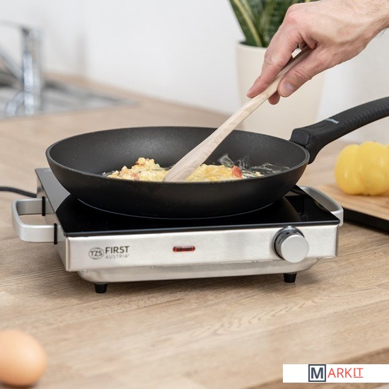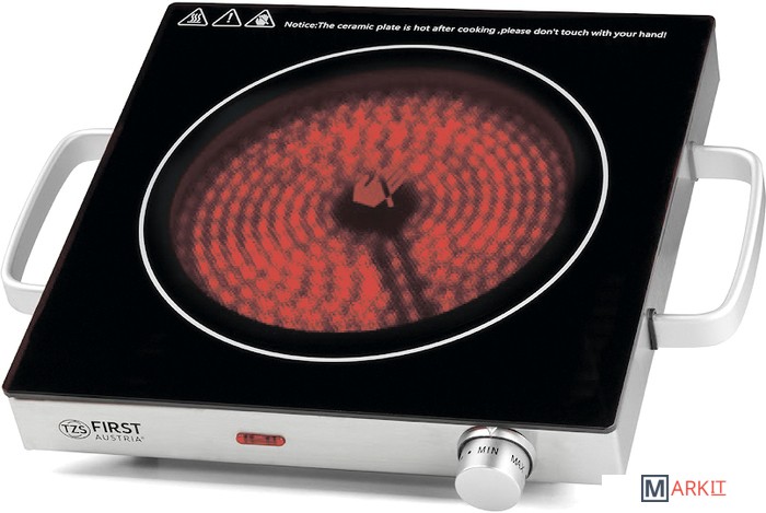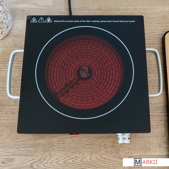Диаметр конфорки: 175 мм.Рабочая поверхность из закаленного стекла: 280х280 мм.Ручки для переноски.