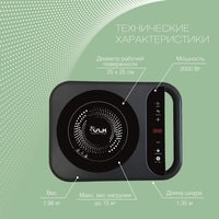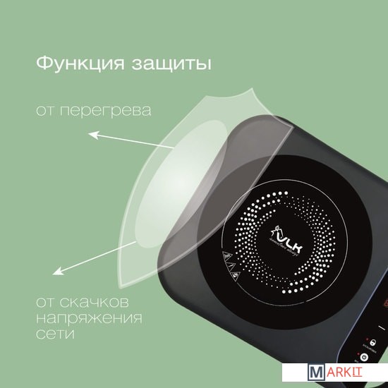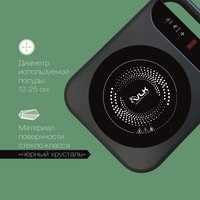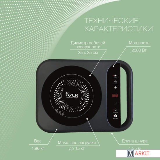 Максимальный вес нагрузки: до 15 кг;Защита от перегрева и скачков напряжения сети;Материал поверхности: стекло класса «черный хрусталь»;Ручка для переноски;Длина шнура: 1.35 м.