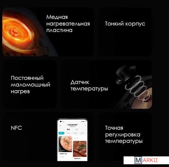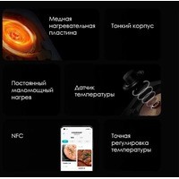 Умная ультратонкая индукционная плита Xiaomi Mijia Induction Cooker — незаменимый помощник в приготовлении вкусных и полезных блюд. Занимает минимум места, удобно хранится и легко моется.Индукционная плита разогревает непосредственно посуду, поэтому энергия не расходуется впустую. Максимальная мощность плиты в режиме жарки — 2100 Вт. Минимальная — 100 Вт, идеальна для тушения и медленной варки.Поворотная ручка позволяет задать необходимую температуру с точностью в 99 пунктов. Контролировать температуру можно на встроенном OLED дисплее.Контроль за температурой посуды осуществляется с помощью внешнего датчика, который непосредственно контактирует с дном кастрюли или сковороды.Система обдува эффективно рассеивает тепло и не допускает перегрева плиты.Управляйте плитой через мобильное приложение MiHome. Устанавливайте нужную температуру и время приготовления блюда, контролируйте состояние плиты.Автоматически отключает плиту при перегреве или отсутствии посуды.