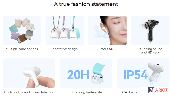 Метки беспроводные, с микрофоном (гарнитура), вкладыши TWS, с активным шумоподавлением, для смартфона, с влагозащитой